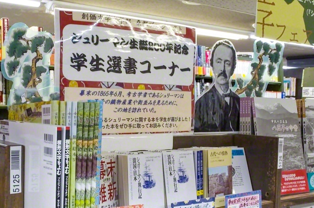 シュリーマンをテーマにした選書。書店員は「学生の皆さんの熱量がすごい。それは、お客さまに伝わるんです」と