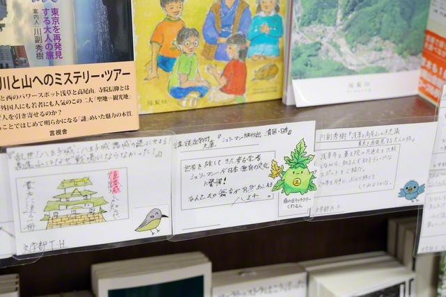 書棚には、学生が考え、デザインした鮮やかなポップがずらり。「シュリーマンと一緒に江戸、そして八王子を旅しませんか」「日常にギリシャの味を」――思わず足を止めたくなる雰囲気が生まれ、多くの市民が本を手にレジへ向かいました。