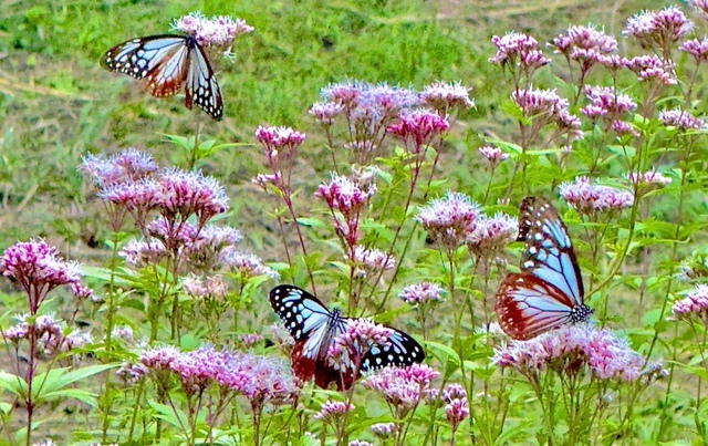 秋の七草の一つ、フジバカマの蜜を求めて舞うアサギマダラ。長距離を移動することから“旅するチョウ”とも言われる。花の蜜は、旅をするための“エネルギー源”となる。…