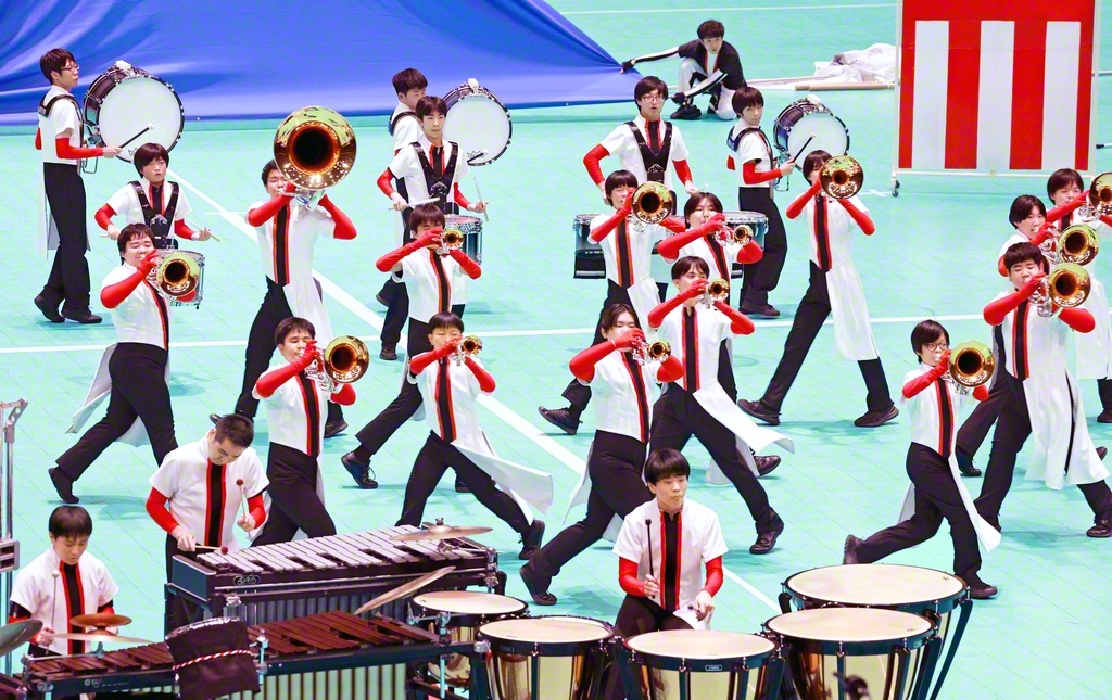 第60回マーチングバンド関東大会で息の合ったパフォーマンスを披露する創価ルネサンスバンガード・ジュニア(昨年11月、さいたま市内で)
