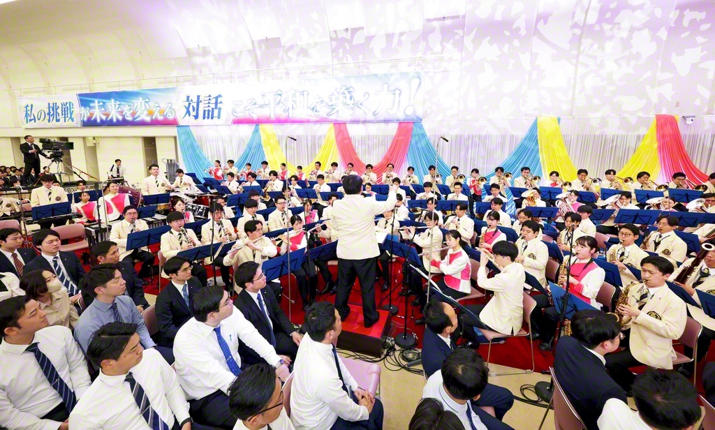 音楽隊と富士鼓笛隊の代表が、学会歌「母」などを演奏。「創価学会母の日」でもあり、女性部結成5周年の佳節でもある「5・3」をことほいだ。