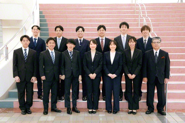 難関の国家試験に合格した創価大学生と卒業生が11日、記念のカメラに納まった(創大池田記念講堂で)。合格者は次の通り。