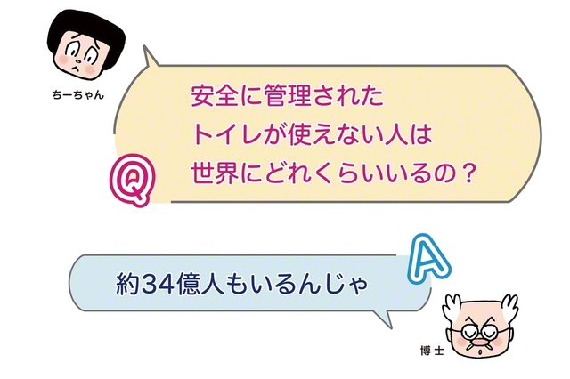 いや、あえて質問したんじゃよ。あらゆる場所に清潔なトイレがある日本――。これは、世界的には例外なんじゃ。実は、世界の約34億人、約4割強もの人々が、安全に管理されたトイレを使うことができない。