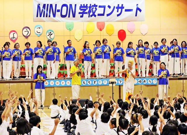 民音主催の「学校コンサート」が1日、大阪市内で行われた(写真)。 歌手のTAEKO GLORYさん・RENさん親子と、合唱団「和ゴスネイション」が、ヒットソ…