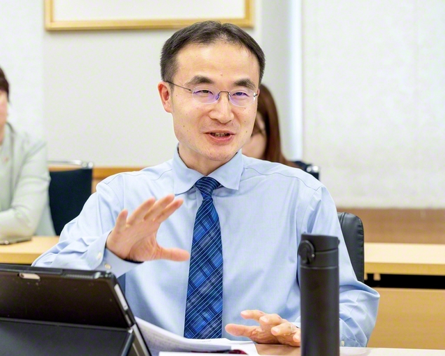 学会の青年世代と慶應義塾大学の井手教授が活発に意見交換(4月25日、世界聖教会館で)