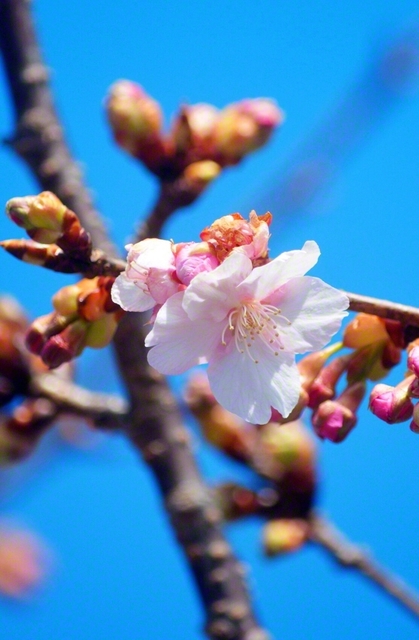いわき市から、いち早く春の便りが届いた(写真=21日撮影)。 早咲きで知られる河津桜。冬の寒さが残る中に春の彩りをもたらす姿は愛らしく、見る人の心を温める。…