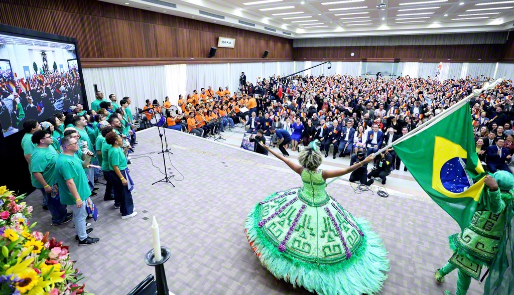 最後に世界の希望合唱団、ダンスグループ「タイガ(大河)」、平和の翼鼓笛隊、タイヨウ(太陽)音楽隊の演奏とパフォーマンスに合わせ、同国SGIの愛唱歌「サウダソン・ア・センセイ(ようこそ、先生)」を全員で大合唱。歓喜と感動が冷めやらぬ中、2030年への船出を固く約し合った。