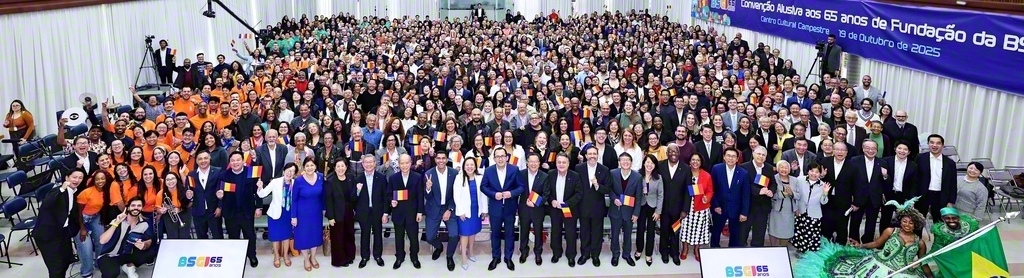 ――4世代によって成し遂げられてきたブラジル広布の歩み。総会の開始直前、降り続いていた雨はやみ、終了後には雲間から日が差し込んだ。