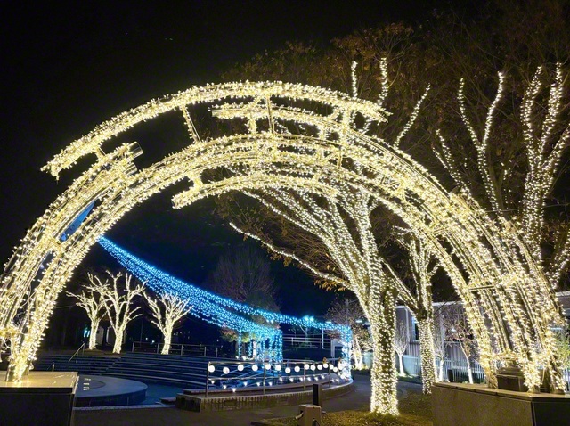 三好市のJR阿波池田駅に隣接する公園で30年続いたイルミネーションが、今年、リニューアルされました。 地域の子どもたちにネーミングを募集し、「へそっこルミ…