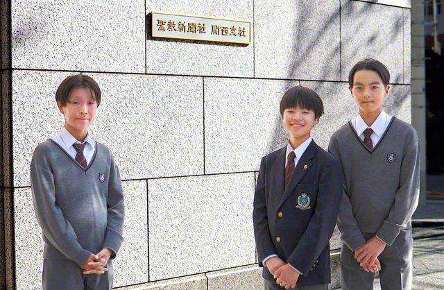 関西創価中学校2年の生徒3人が10月29、30日に、聖教新聞社関西支社で職場体験を行った(写真)。