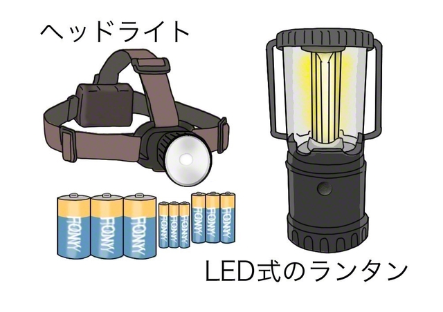 また、暗さ対策が必要で、ヘッドライトと乾電池式のLEDランタンがあると便利です。