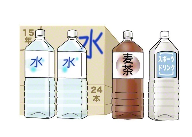 飲料水は、調理時に使う水を含めて、1日当たり1人約3リットルを目安にしてください。