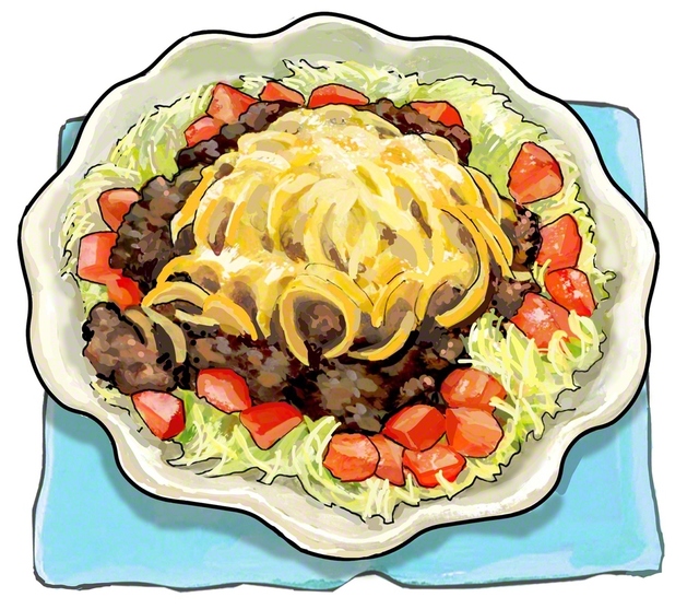 ・レタス30g ・トマト40g ・オリーブオイル小さじ1(4g) ・豚ひき肉100g ・チリパウダー小さじ1/3 ・食塩1つまみ ・粗びき黒こしょ…