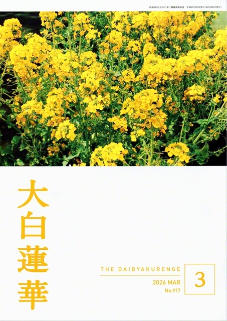 「大白蓮華」3月号(写真)が完成した。 原田会長の巻頭言は「輝け! 社会の黄金柱――『池田門下ここにあり』の精神で」。“東日本大震災15年”“壮年部結成60…