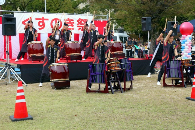 創価熊本師子吼太鼓団は2日、熊本市北区で開催された「くすのき祭」に出演し、力強い演奏で魅了した。