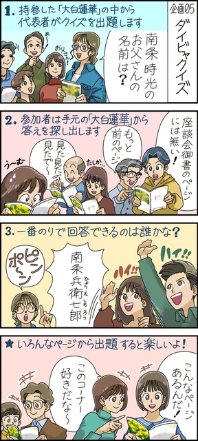 マンガ「座談会企画ラボ」では、座談会で楽しめる“ミニ企画”を提案しています。 今回は、名付けて「ダイビャクイズ」です。 【内容】持参した「大白蓮華」の中か…