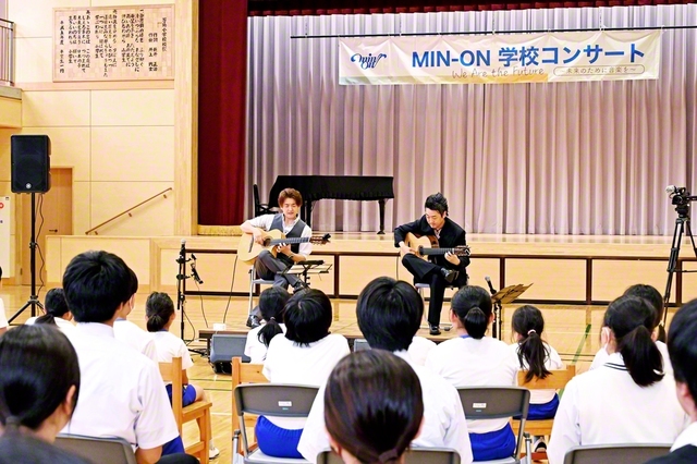 民音主催の学校コンサートが24日、群馬・神流町立万場小学校で行われ、同校の児童と同町立中里中学校の生徒らが参加。民音公演で好評を博すスパニッシュ・ギターユニッ…