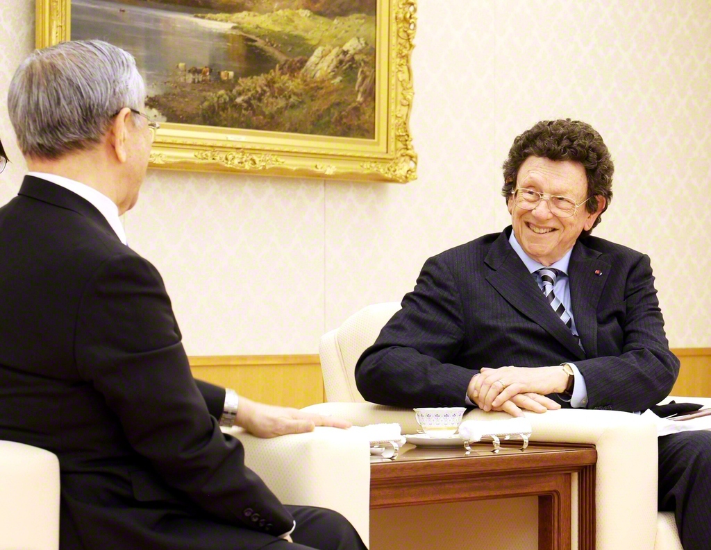 国連事務総長の軍縮諮問委員会委員などを歴任し、核不拡散研究の権威として名高いポッター所長。語らいでは、池田先生が深い交流を結んだキルギスの作家チンギス・アイトマートフ氏の子息と所長が、かつて交流があったことなど学会との縁が話題に。