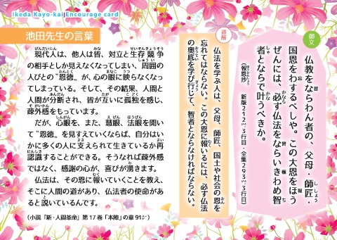ここでは、池田華陽会の友の疑問や悩みに答える「励ましカード」を紹介します。メンバーや友人に渡すなど、“つながるプロジェクト”の推進にご活用ください。