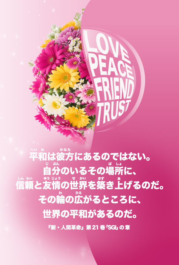 ここでは、女性部「励ましカード」を紹介します。池田先生が折々に触れてつづってきた励ましの言葉をカードにしました。ダウンロードした画像をシェアするなど、今、〝言葉の花束〟を届けたい友の顔を思い浮かべながら、ご活用ください。