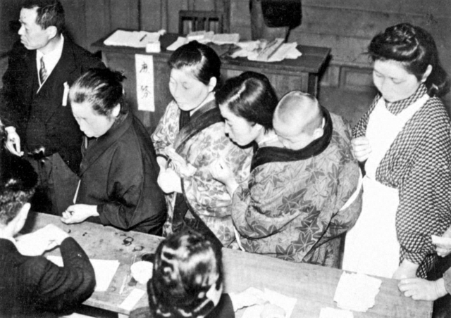 1945年11月、衆議院議員選挙法が改正され、女性に参政権が与えられるように。翌46年4月の選挙では、39人の女性議員が誕生した。同年11月、国民主権、基本的人権の尊重、平和主義を基本とする「日本国憲法」が公布され、翌47年5月3日に施行される。日本は民主主義国としての一歩を踏み出したのだった。